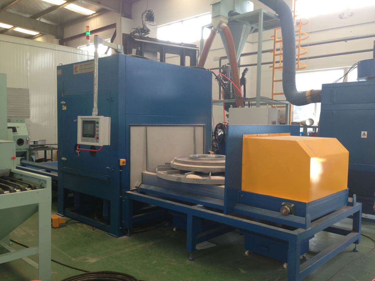 主要由主機噴砂室、轉盤轉動機構、噴槍擺動機構、臺車、電控系統等組;