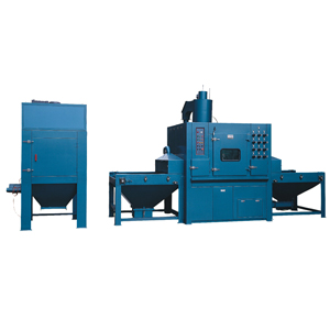 采用三角皮帶輸送工件,不會積砂,皮帶速度配合噴砂工藝要求可實現變頻調速; 每支噴槍角度可自由調節槍架實現自動變頻搖擺,并可定點噴砂,靈活適用性廣; 采用先進的上旋風分離系統配置,粉塵分離效果好,噴砂效率高;